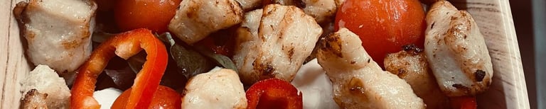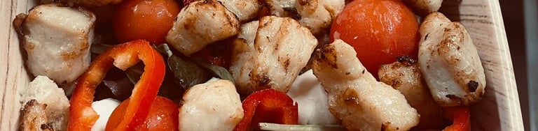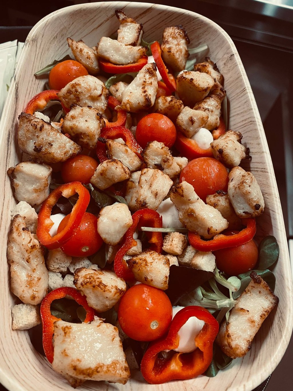 Insalatona di pollo* o tonno all’olio d’oliva (con insalata mista, pomodorini, peperoni, mozzarella, crostini)